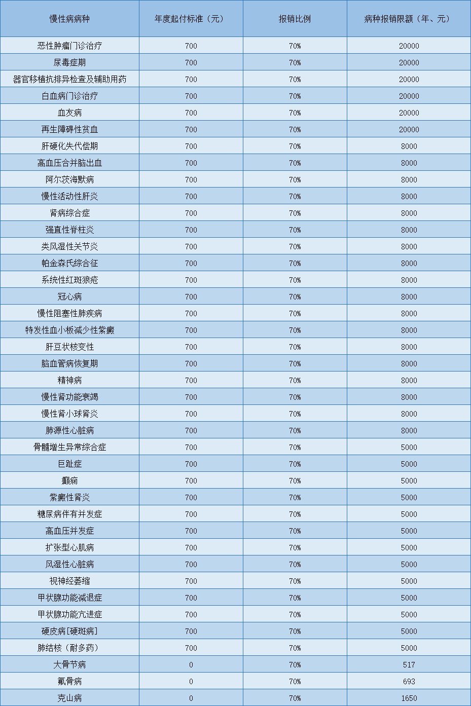 城镇职工门诊慢性病(40种),如下表: