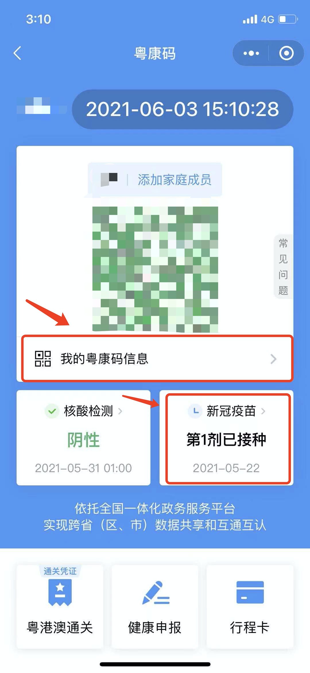 第二步:登录之后,点击首页的“粤康码”--“新冠疫苗”或“我的粤康码信息”都可以。