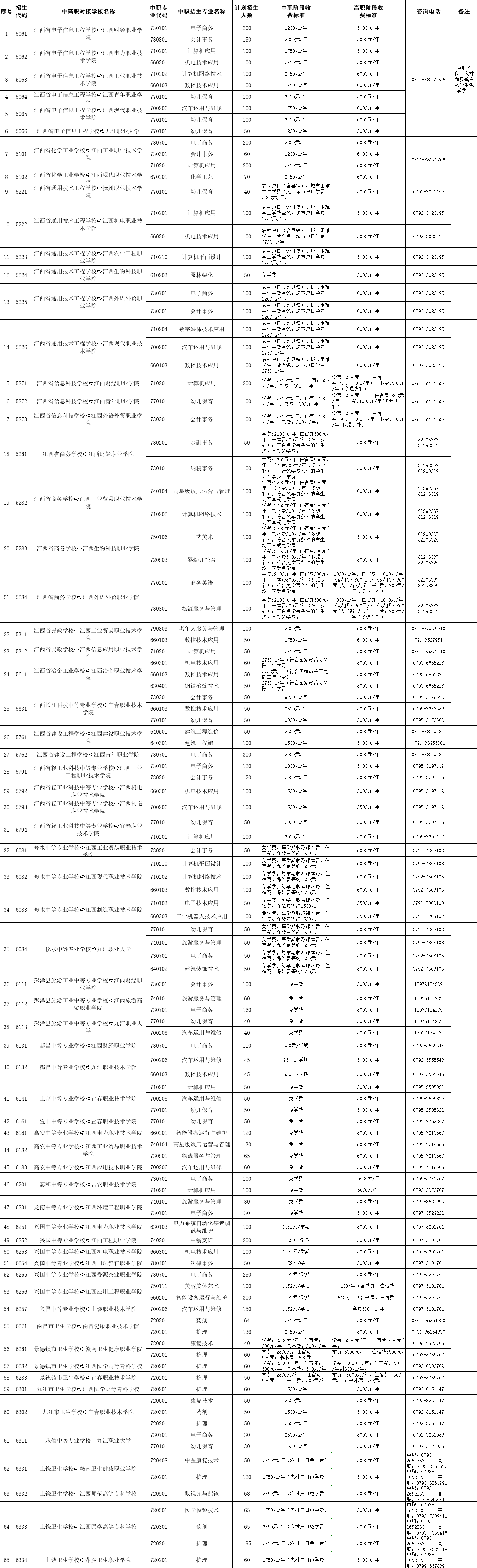 2022江西中高职院校对接招生学校及专业(附学费标准)