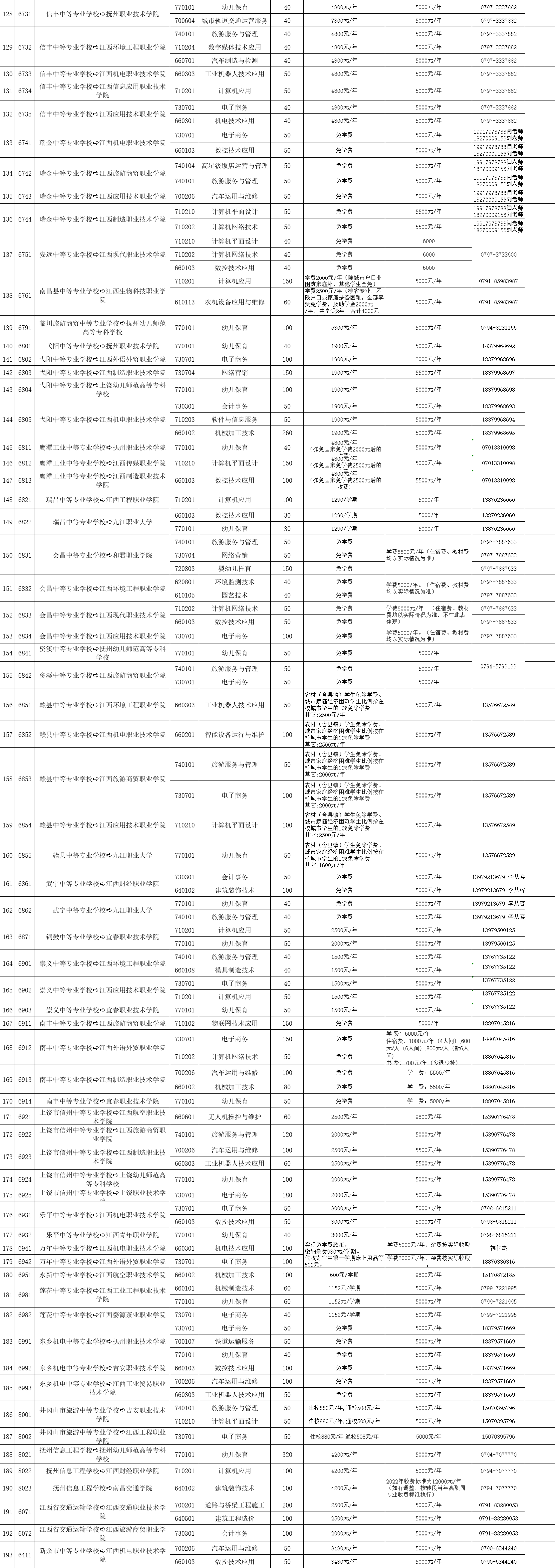 ➤江西省2022年中高职院校对接招生专业及计划统计一览表: