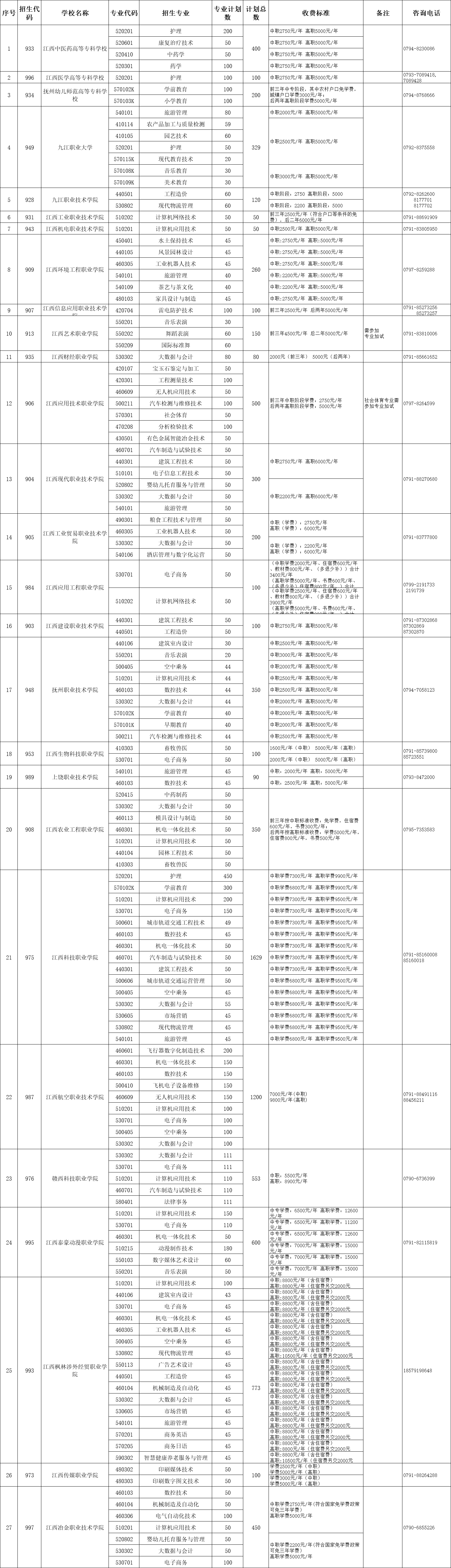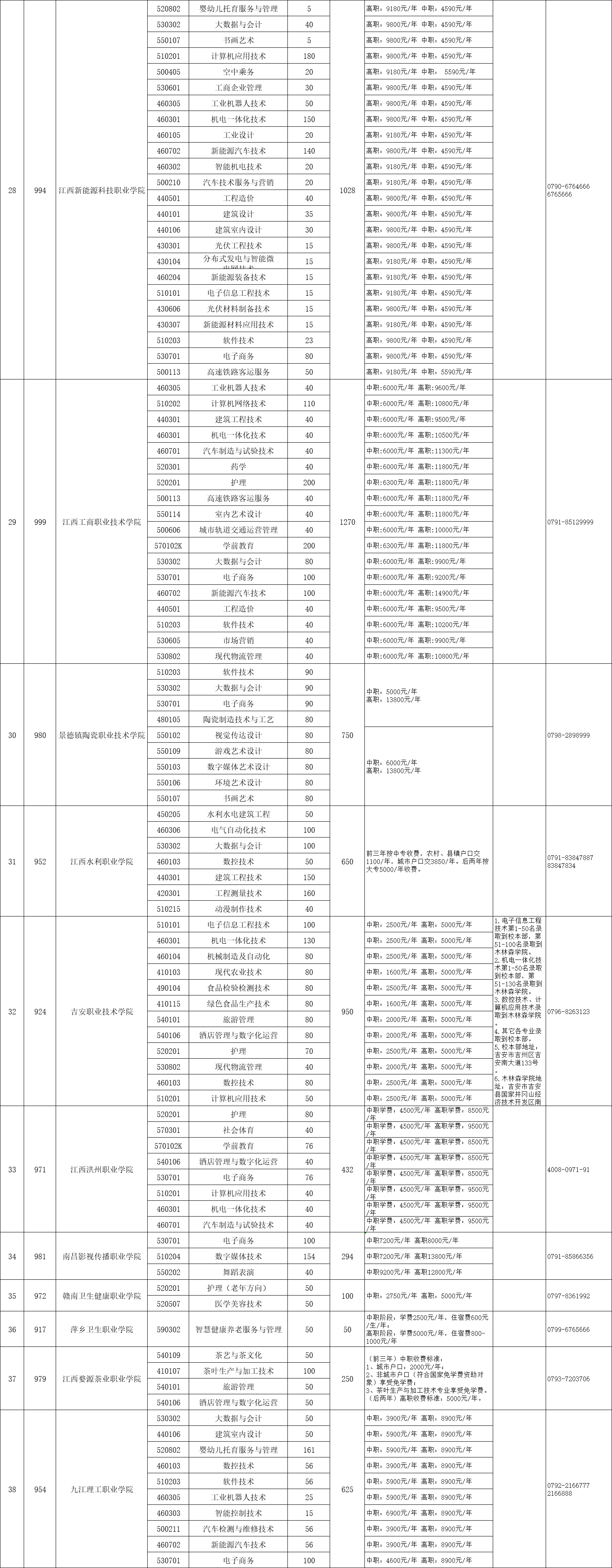 ➤江西省2022年非师范定向五年制高职分专业招生计划一览表: