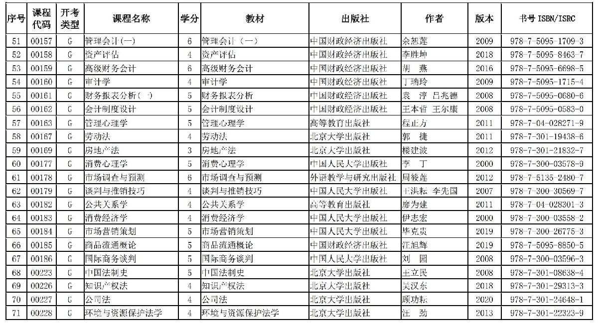 3.财务管理(专升本)专业中的“公司治理与内部控制课程”调整为“14033 内部控制与风险管理”课程。土木工程与工程管理专业中的“工程项目管理”课程代码由 06087 调整为 13648。