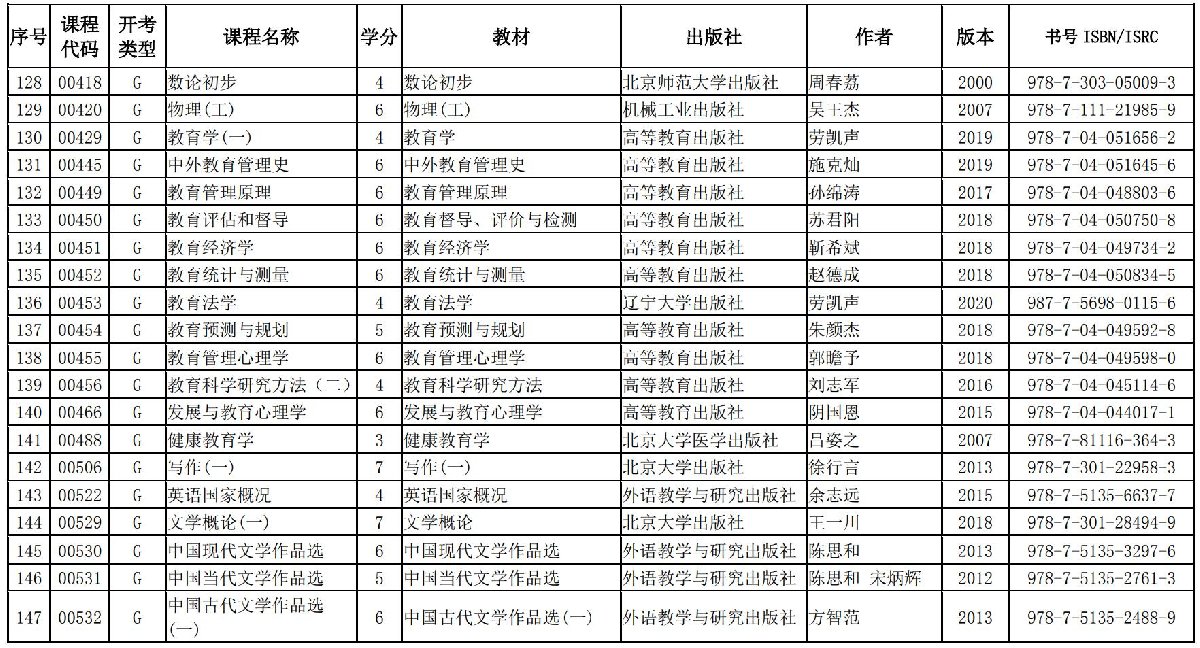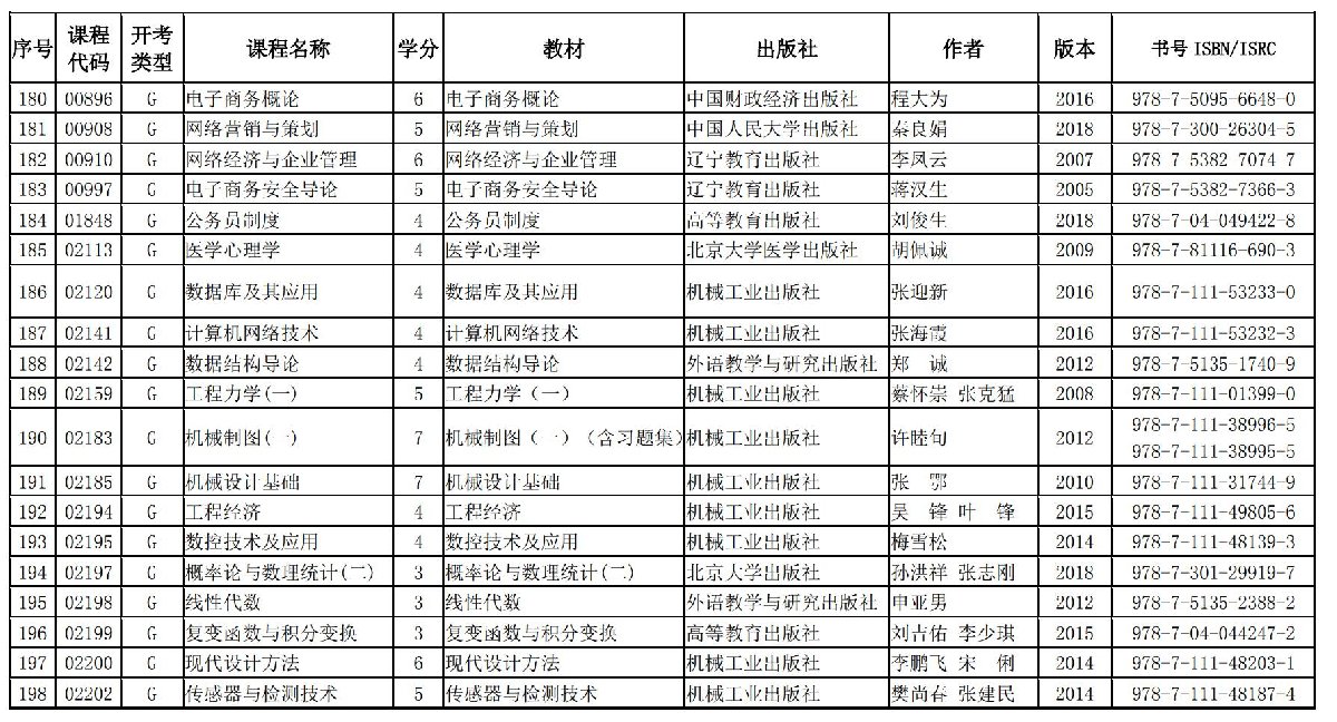1.考生可在山东省招生考试图书网(>>>点击进入网站)直接搜索课程代码购买教材;也可根据课程教材一览表里公布的教材版本自行购买。因出版社对各自所印制的教材版本标识不同,我院把当次考试所使用的教材都标注了书号(ISBN)。教材书号(ISBN)相同,年份印次不同的教材内容相同。
