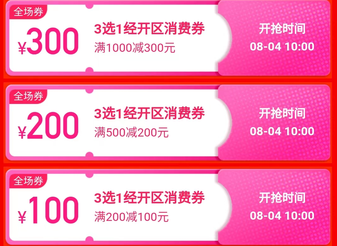 四、消费券面额:满200减100+满500减200+满1000减300