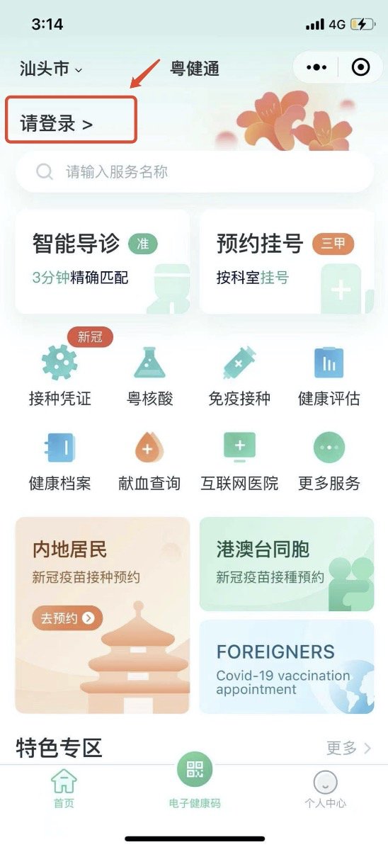 第三步:点击下方新冠疫苗预约(这里可以根据自身情况选择:内地居民、港澳台同胞、外籍人士)。