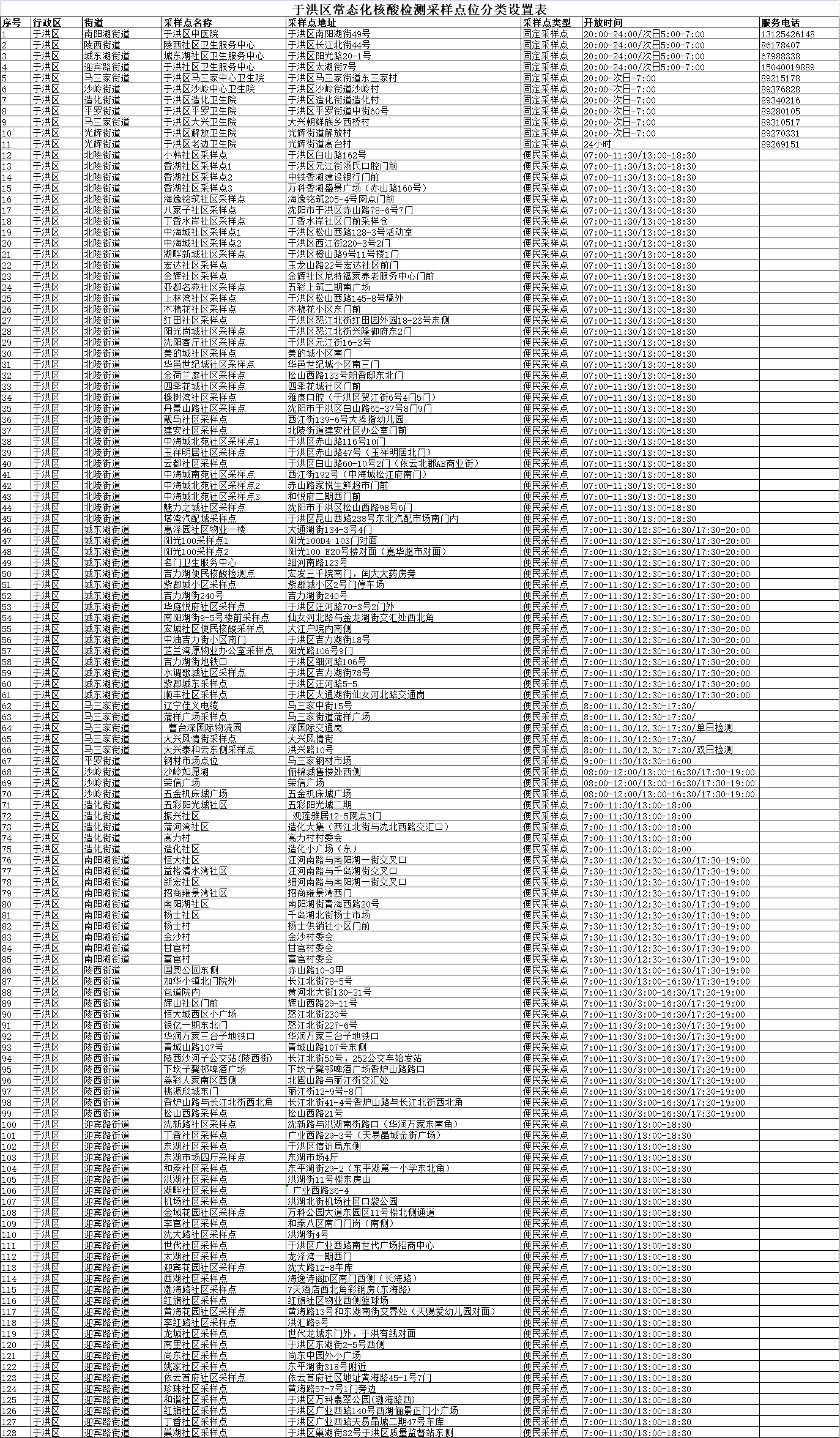 沈阳于洪区免费核酸检测点工作时间