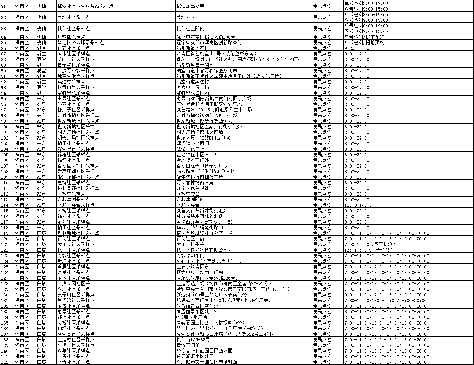 沈阳浑南区免费核酸检测点
