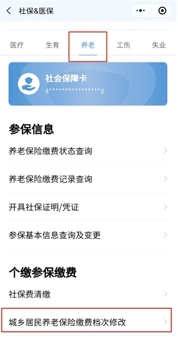 城乡居民养老保险缴费档次修改