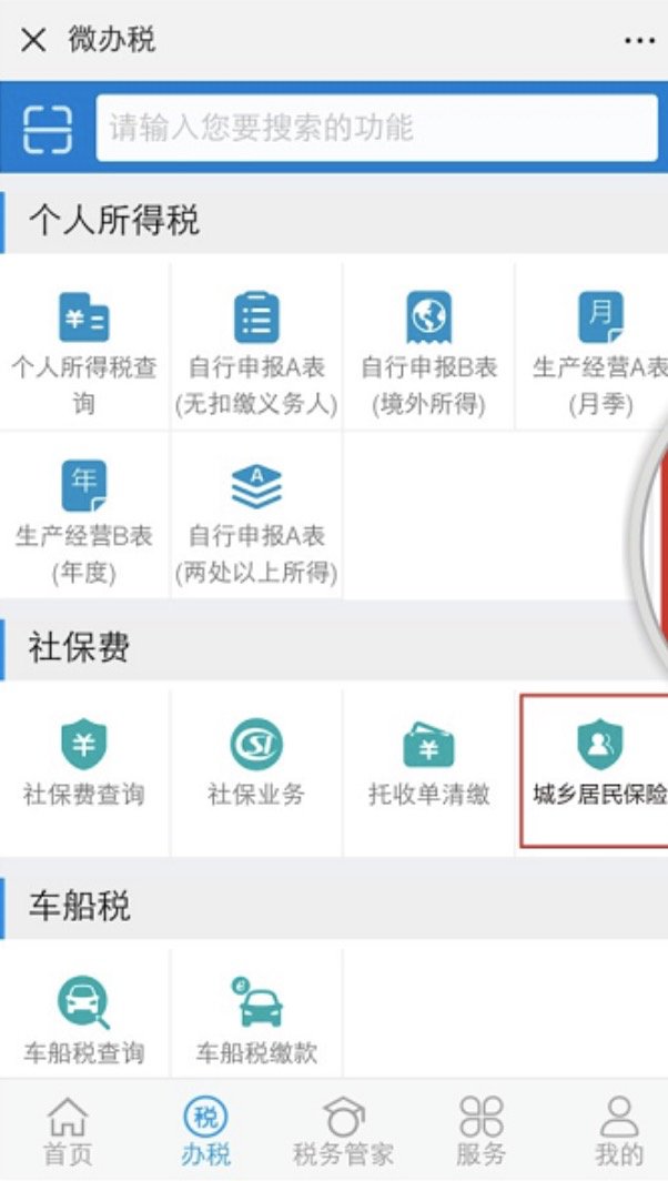 第二步:选择“【微办税】--【个人业务】--【城乡居民保险】--【城乡居民保险清缴】。