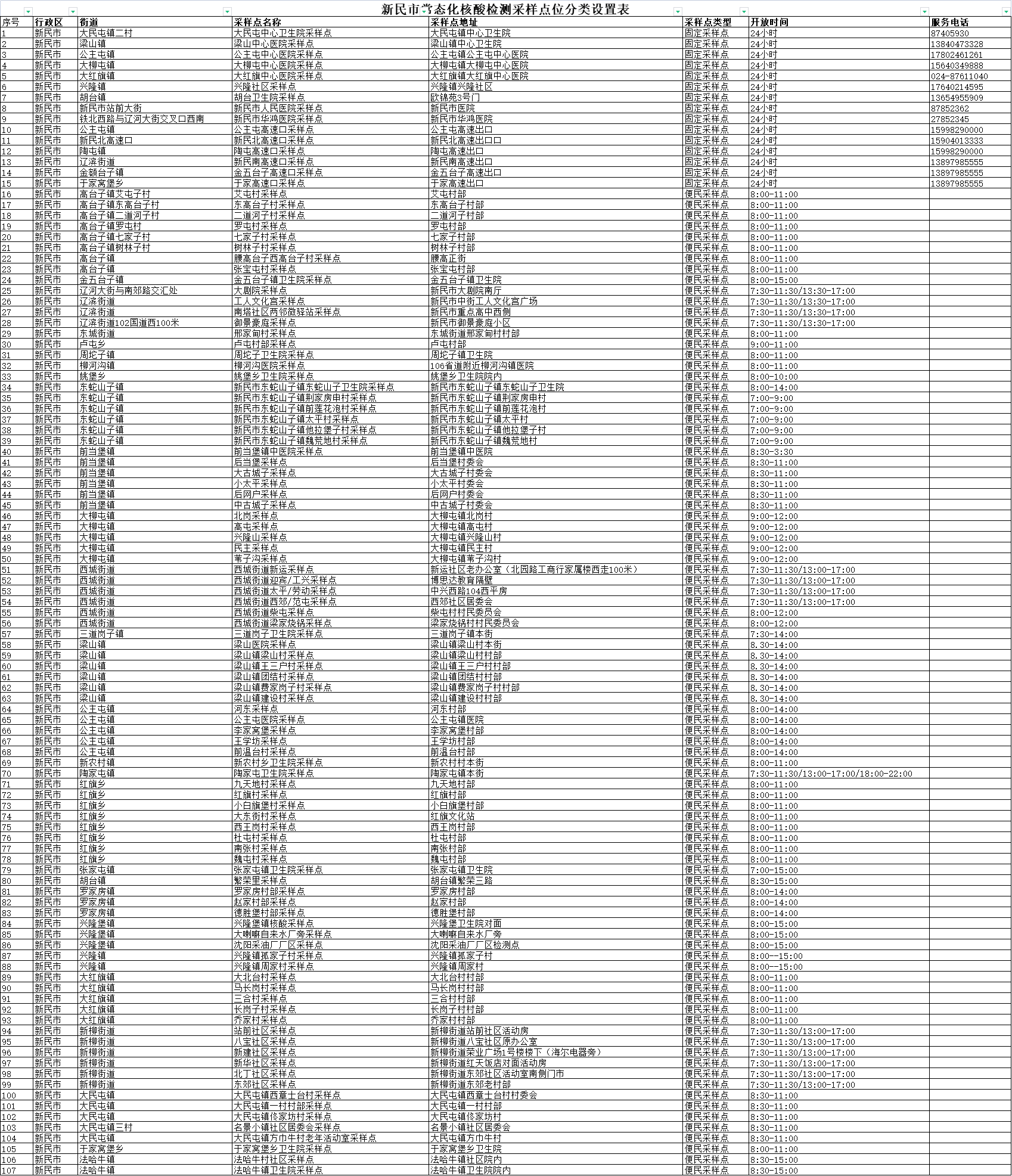 沈阳新民市免费核酸检测点地址: