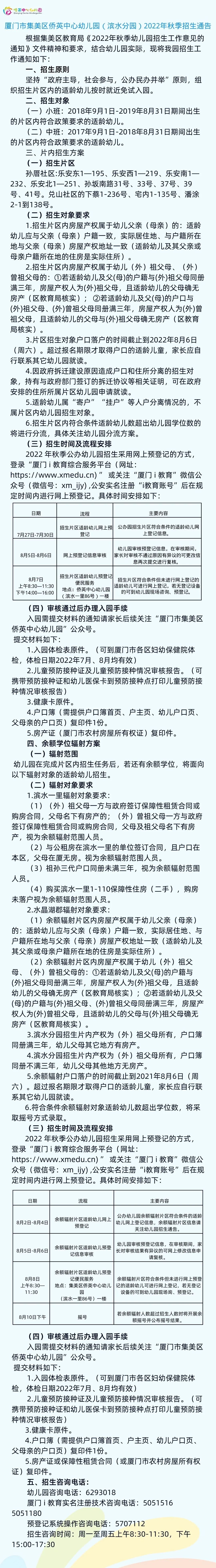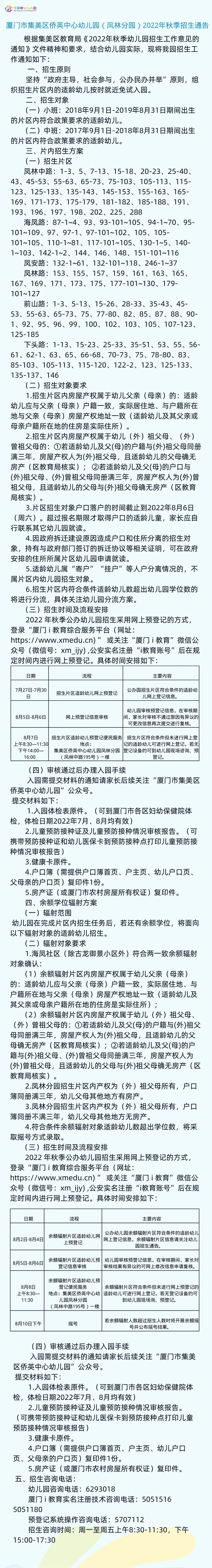 厦门市集美区侨英中心幼儿园(一里、滨水、凤林)2022年秋季招生通告