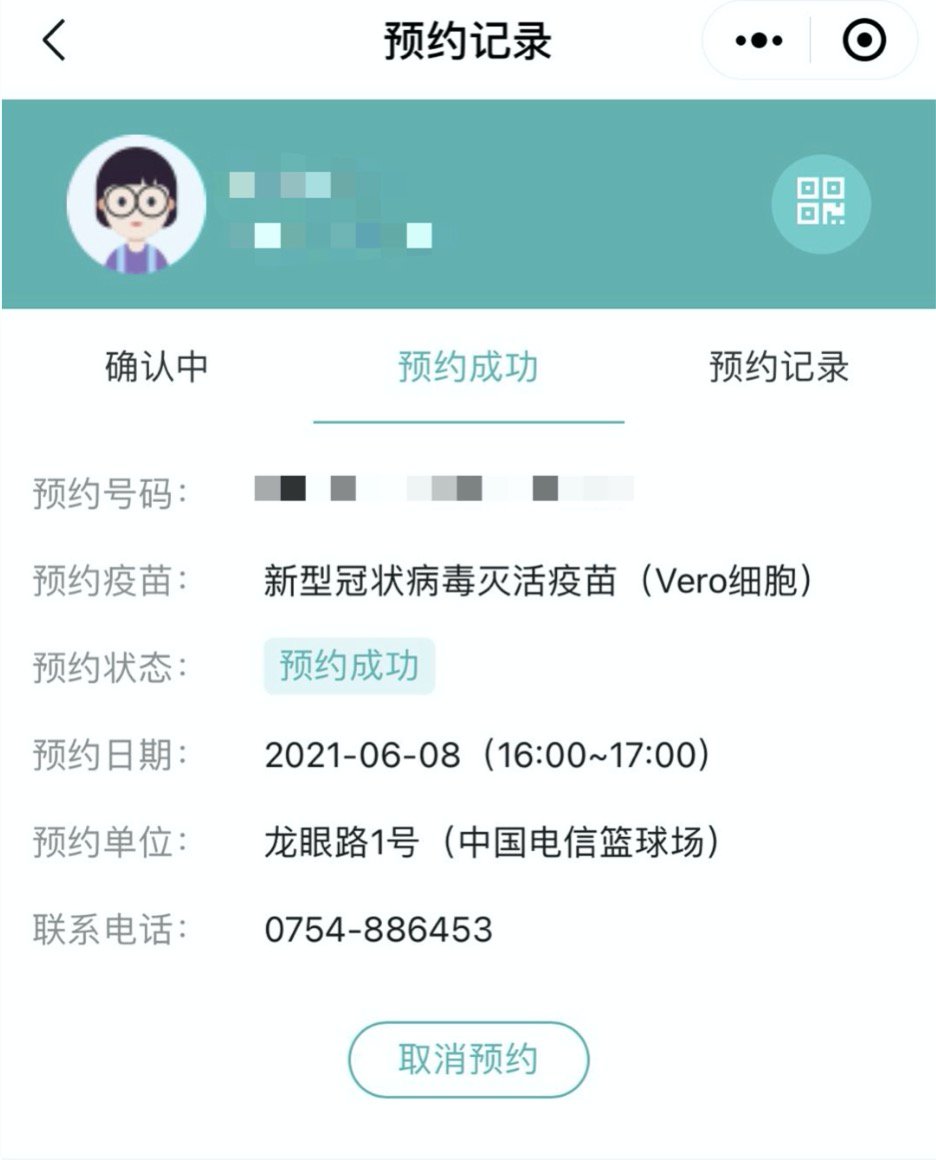 预约成功的可以返回成人列表的界面,在【预约记录】里查看,如计划有变不接种了可以点击【取消预约】。短信也会有预约成功的提示的~