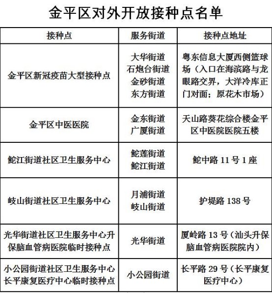 汕头市金平区新冠疫苗放号时间公告 汕头市金平区新冠疫苗放号时间公告表