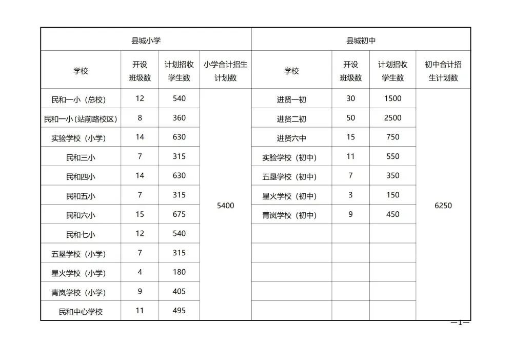 2022南昌进贤县县城小学及初中招生计划人数一览表