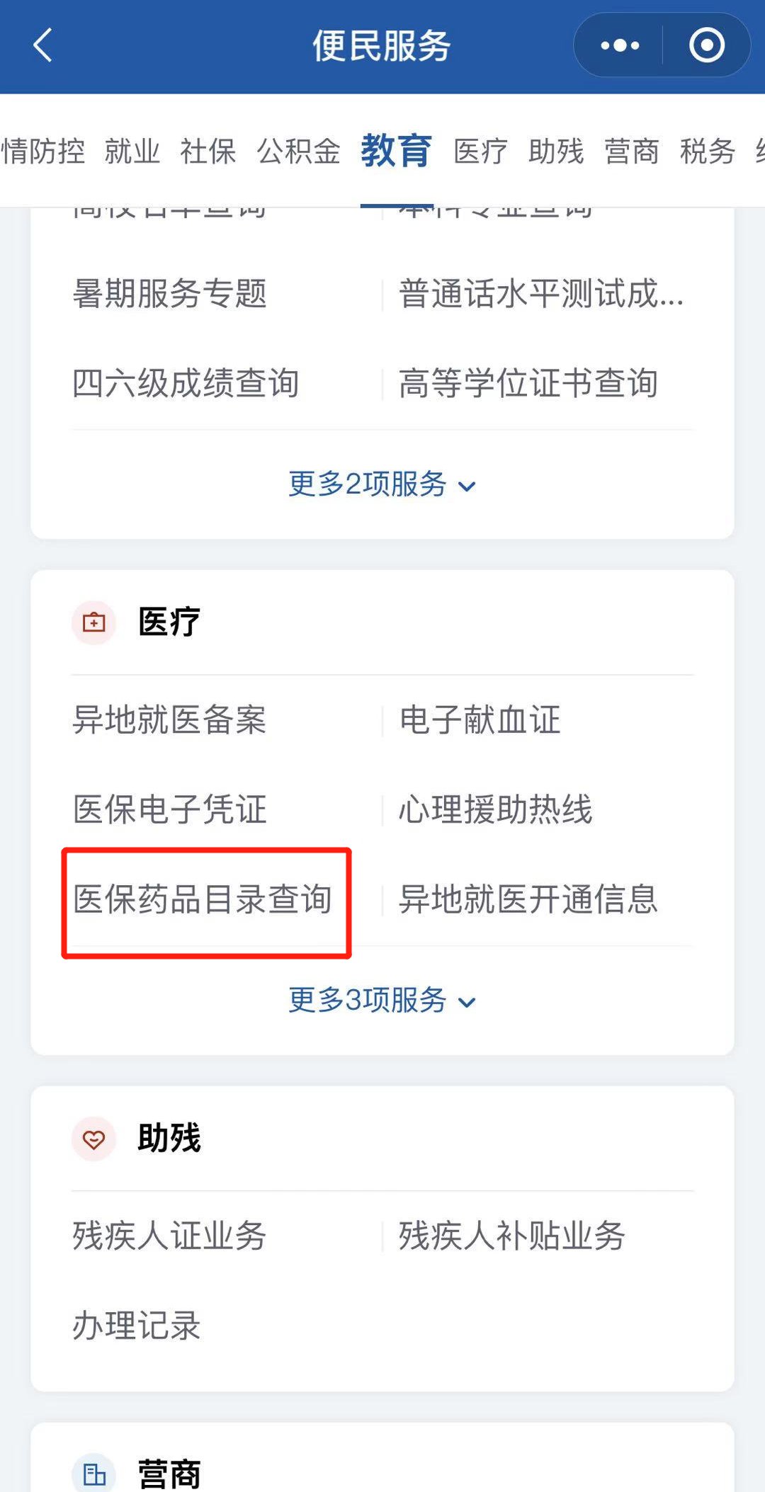 第一步:进入国务院客户端平台后,依次点击【更多】-【医保药品目录查询】。如下图所示: