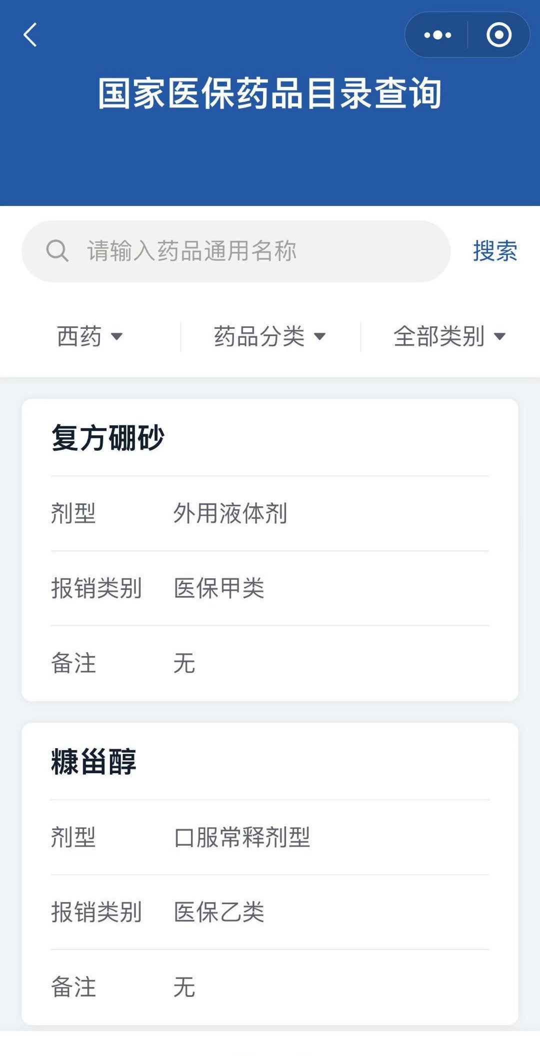 备注:如在医保目录的,会直接查询到信息,否则查询不到相关信息。(注意要选择正确的药品分类哦)