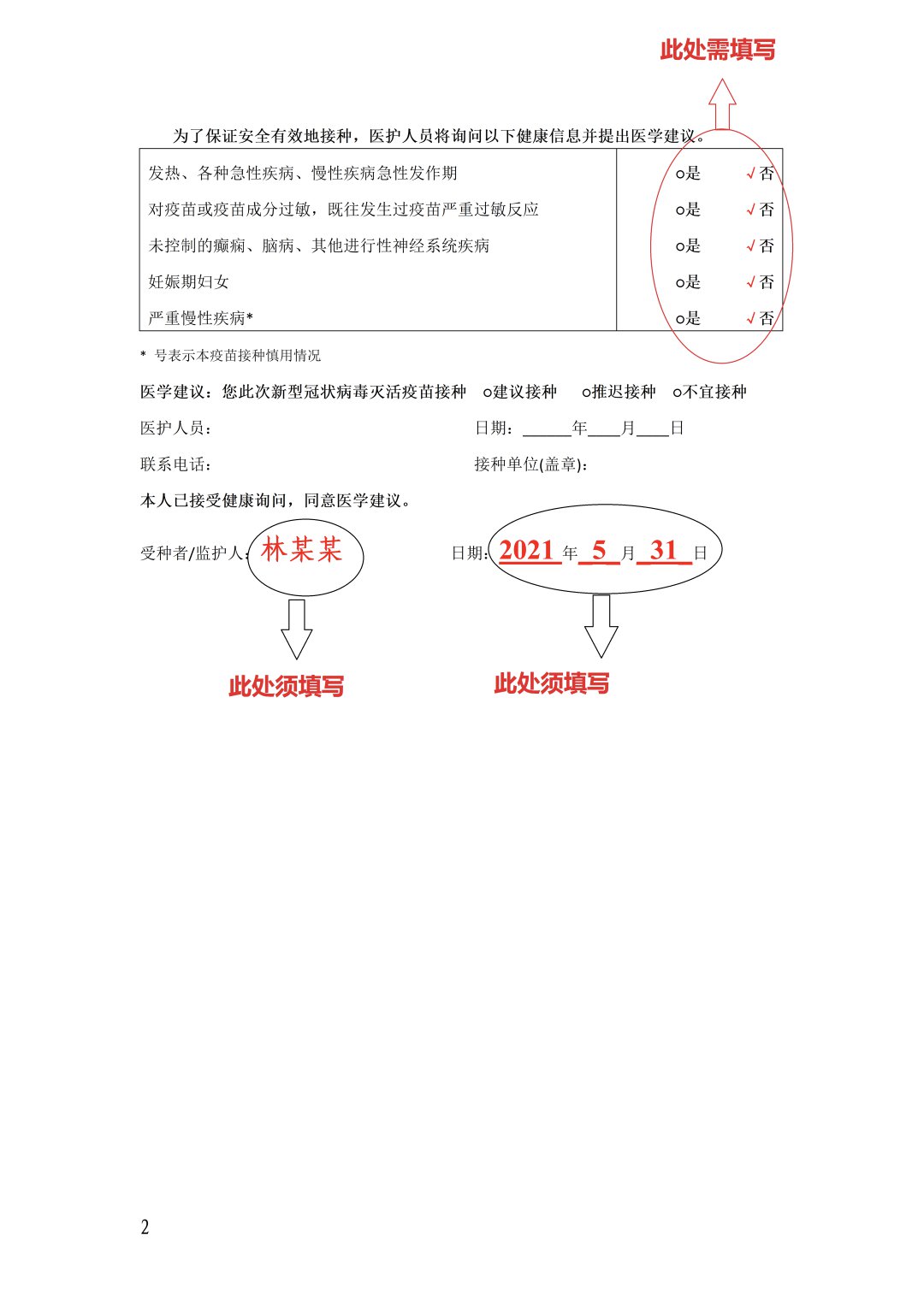 《广东省新冠病毒灭活疫苗紧急使用知情同意书》(需双面打印)填写方法: