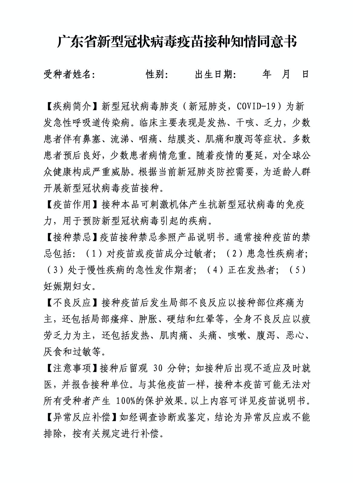 广东省新型冠状病毒疫苗接种知情同意书下载入口