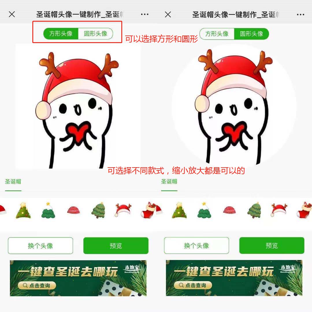 第三步:选择一款自己喜欢的圣诞帽子,还可以在图片上进行移动、缩放调整圣诞帽,调整好后可以点击“预览”查看头像效果。(还可以选择变成圆形哦!)