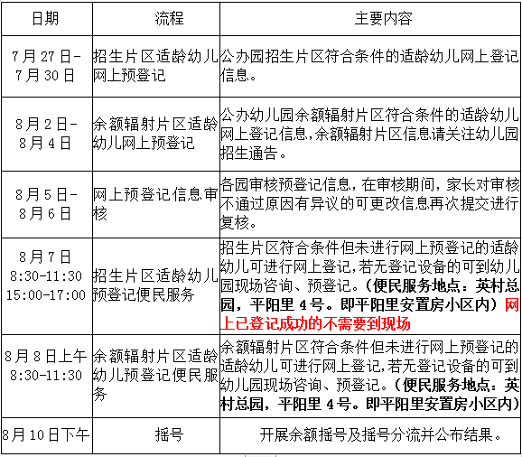 招生片区及余额辐射片区符合条件的适龄幼儿根据时间安排进行网上预登记。