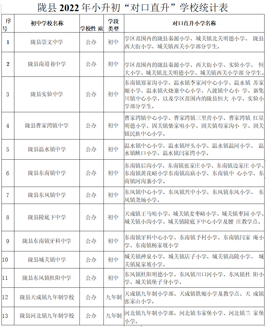 2022宝鸡陇县中小学学区划分方案(2022宝鸡陇县中小学学区划分方案图)