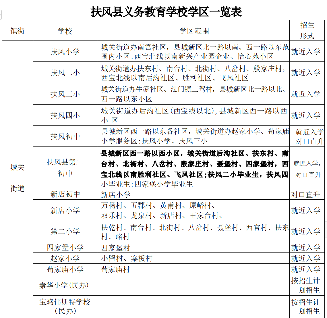 2022宝鸡扶风县中小学学区划分一览 宝鸡市小学区域划分