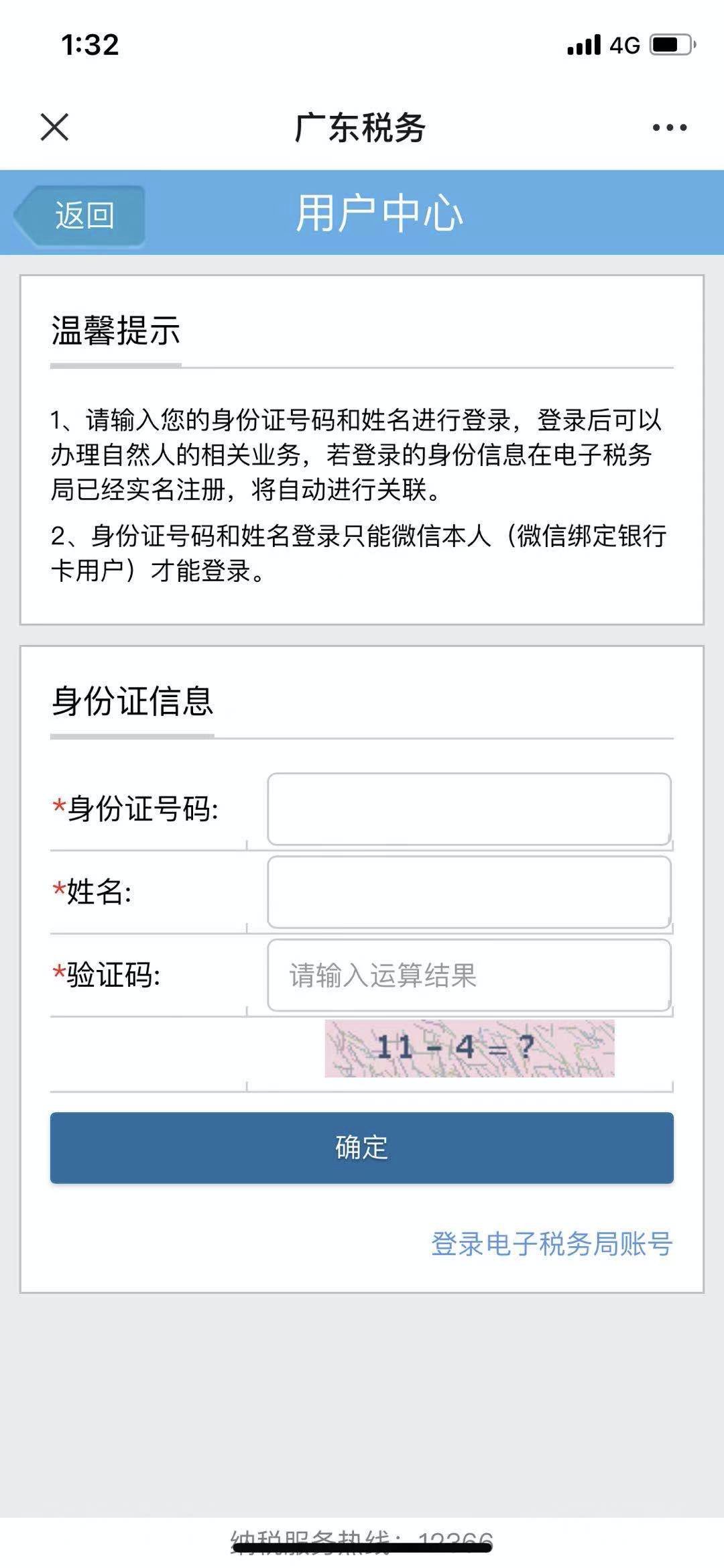 1.手机端进入“广东税务”微信公众号,点击菜单底部“微办税”选择“用户中心”,根据系统提示输入身份证号码和真实姓名,绑定身份信息。