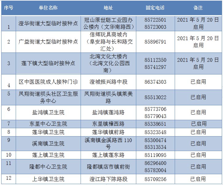 澄海区新冠疫苗接种医疗单位一览表