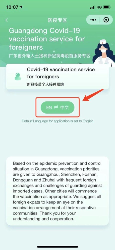 5月14日起,进入“粤健通”微信服务平台的外籍人士新冠疫苗接种服务页面进行信息填报、预约。