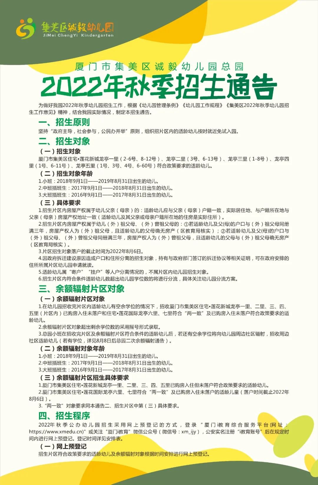 2022厦门集美诚毅幼儿园招生 2022厦门集美诚毅幼儿园招生情况