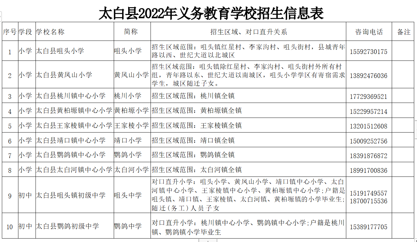 2022宝鸡太白县中小学学区怎么划分 宝鸡市学区划分