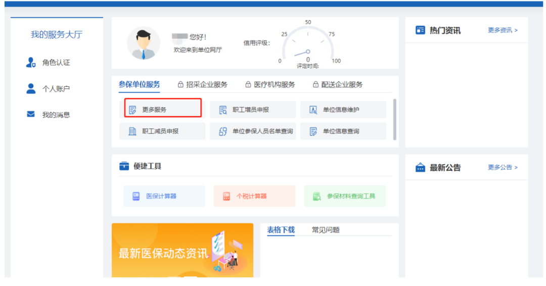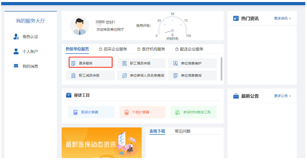 (2)选择“更多服务”—“网上经办”—“医保关系转移业务”下的“职工参保凭证打印 ”录入信息提交打印后交至转出地经办机构。