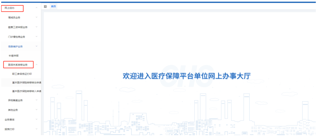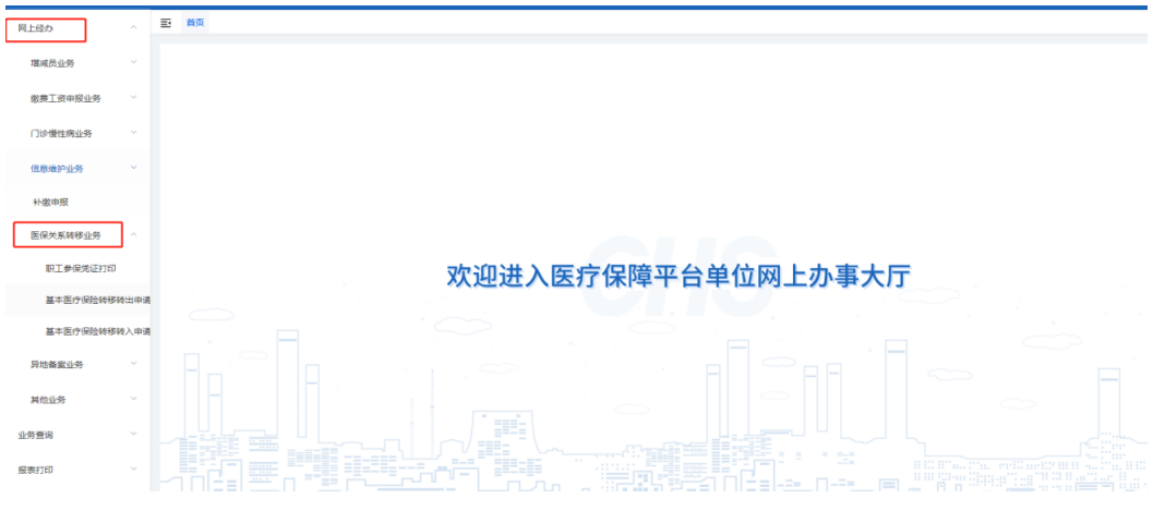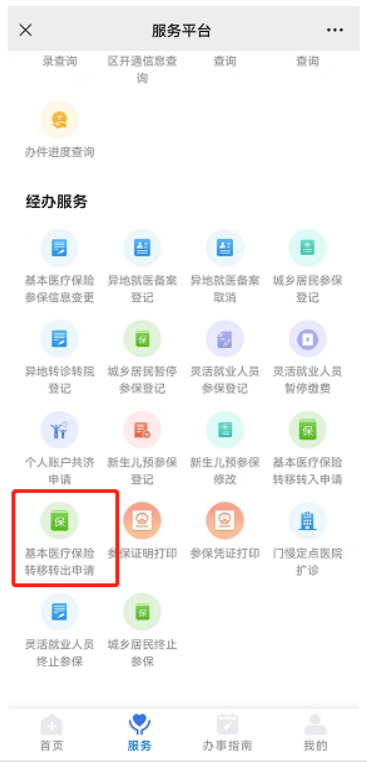 (3)在“经办服务”中选择“基本医疗保险转出申请”,录入信息提交即可(需要转入地可实现线上转移经办)