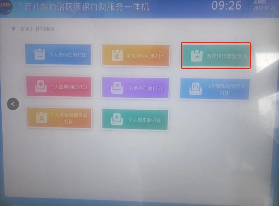 (2)选择“医疗转出缴费凭证”,进入后点击打印即可