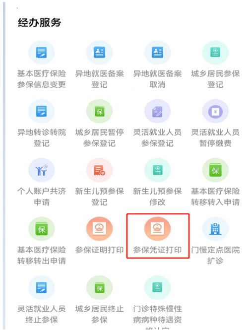 (3)在“经办服务”中选择“参保凭证打印”,录入信息提交打印后交至转出地经办机构。