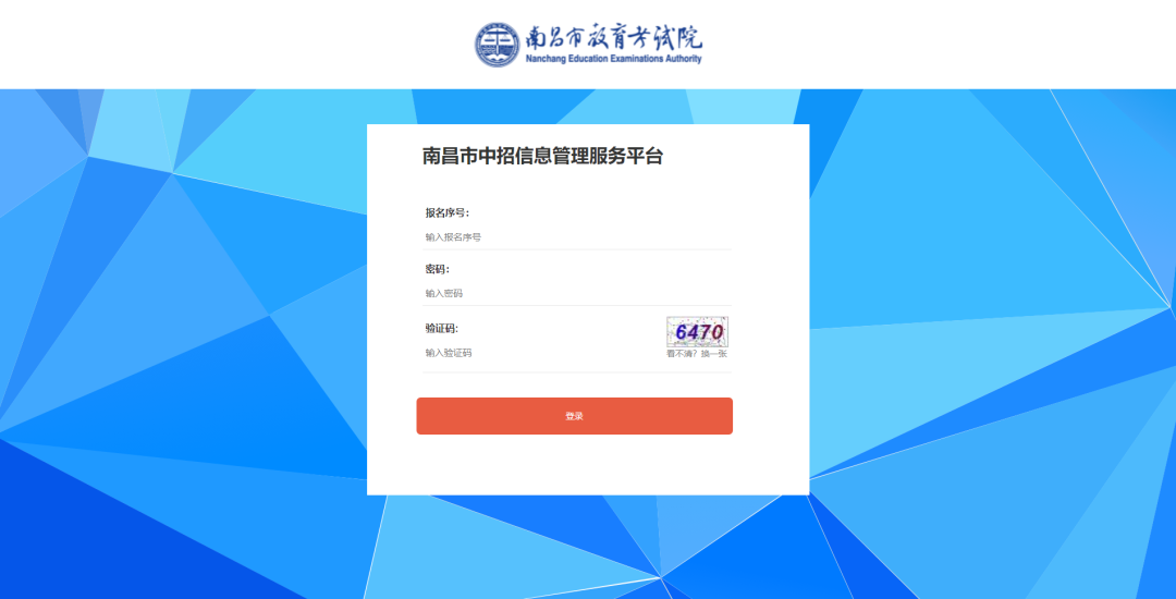 进入中招学生端登入页面,输入学生报名序号及密码登入系统;