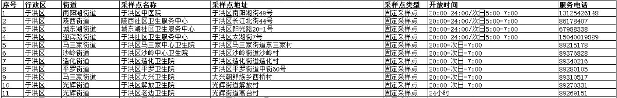 说明:目前于洪区仅一个24小时开放的核酸检测点,其余检测点为凌晨依然可以检测的点位。建议提前电话咨询确认,以免检测点开放时间变动。