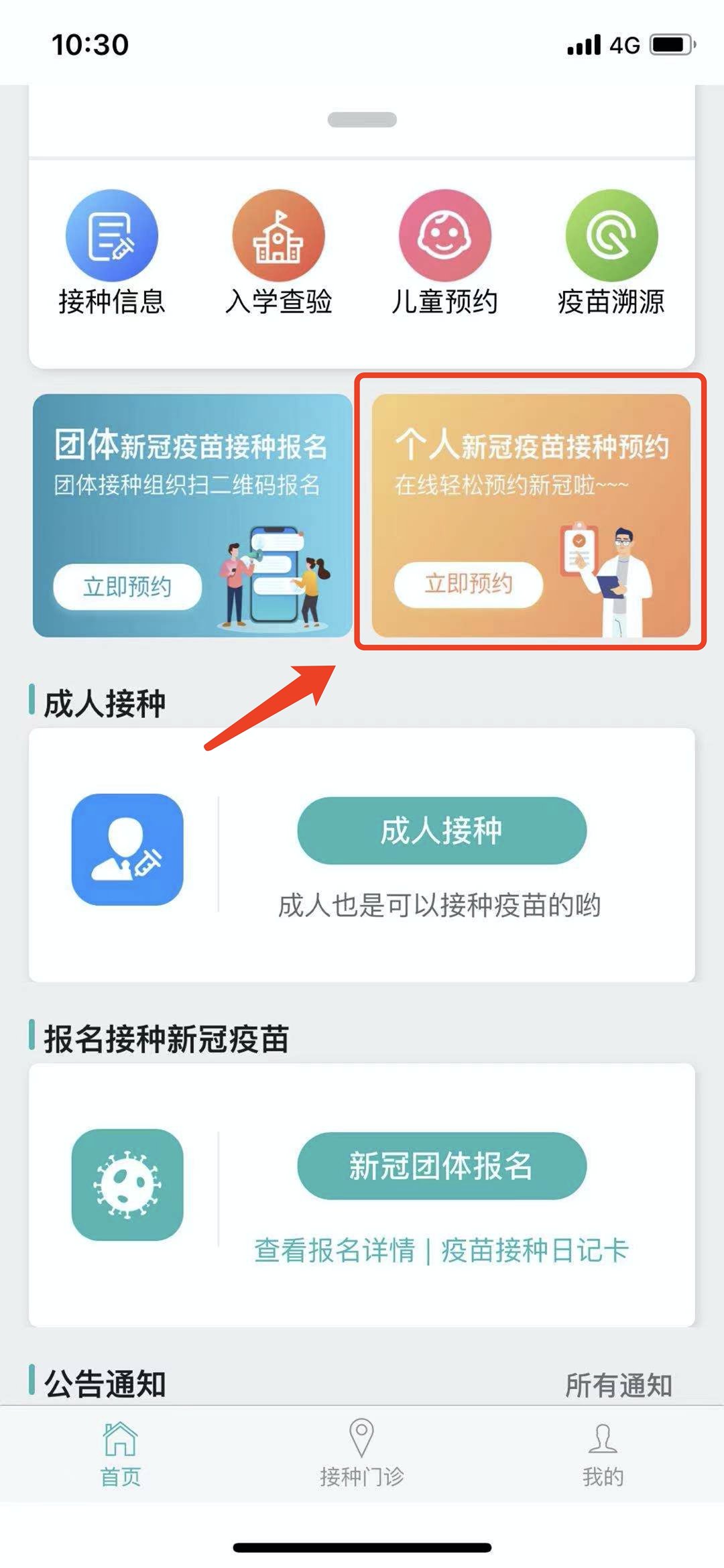 ②点击【预约接种】,如果没有绑定需要先输入个人信息(帮家人预约可以点击下方添加成人输入信息)。