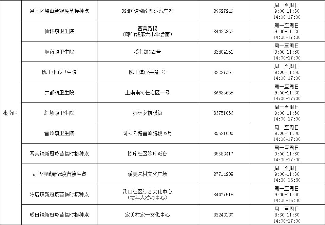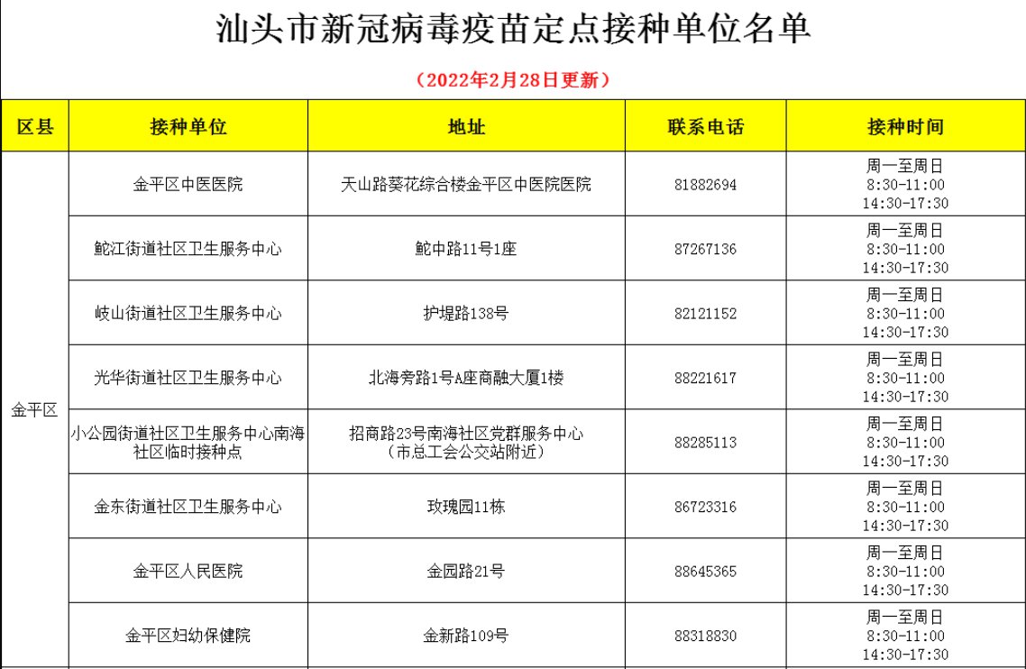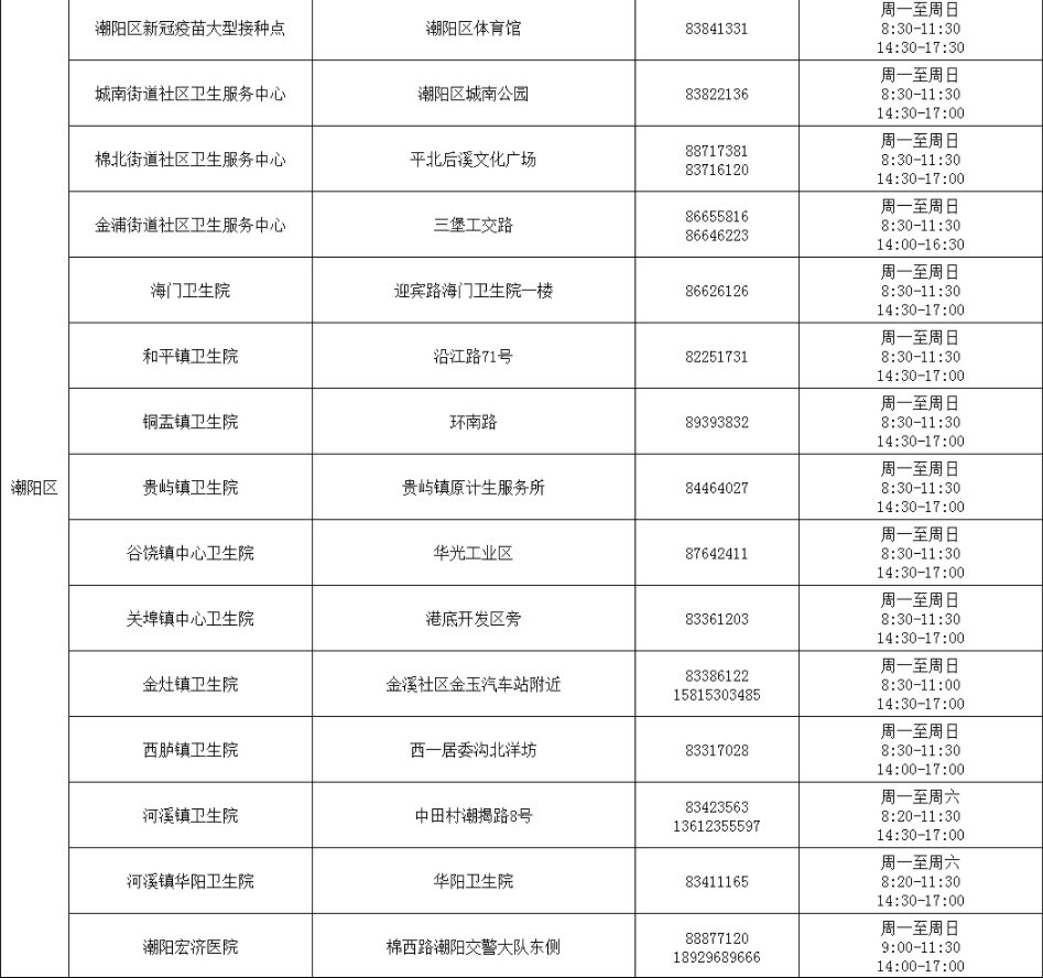汕头市各区县新冠疫苗接种门诊名单一览(附地址+电话)