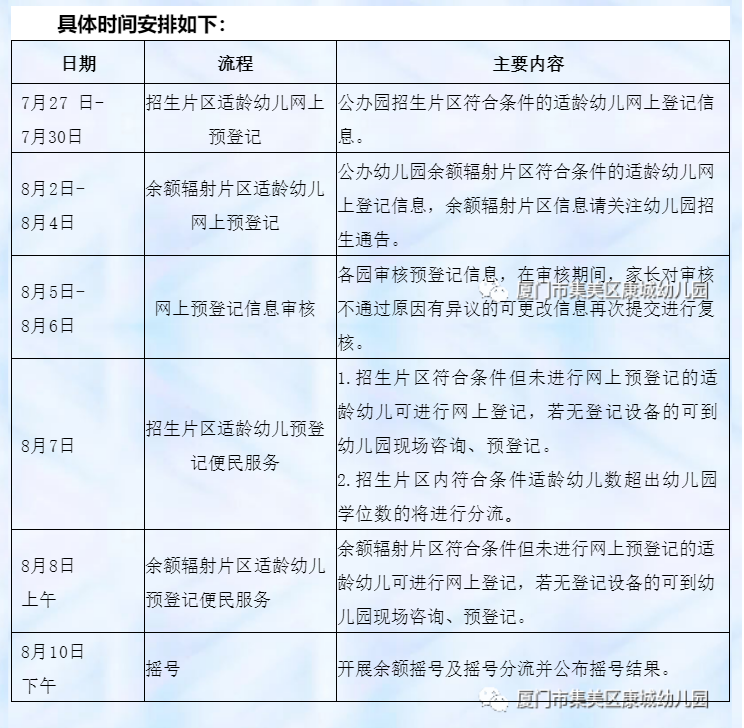 (一)网上预登记:招生片区符合政策要求的适龄幼儿及余额辐射对象根据时间安排进行网上预登记。