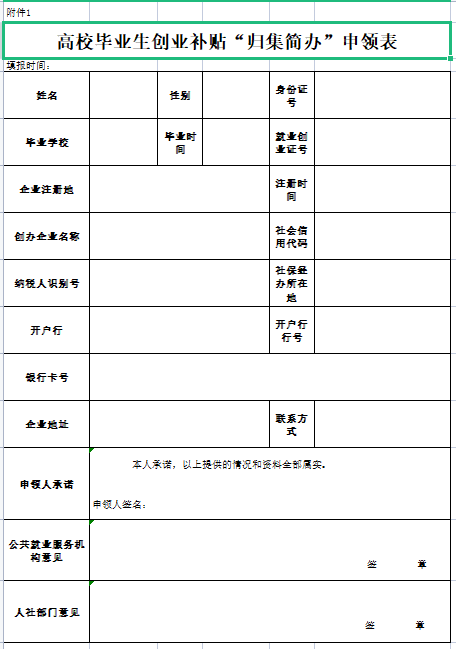太原高校毕业生创业补贴归集简办申领表下载入口