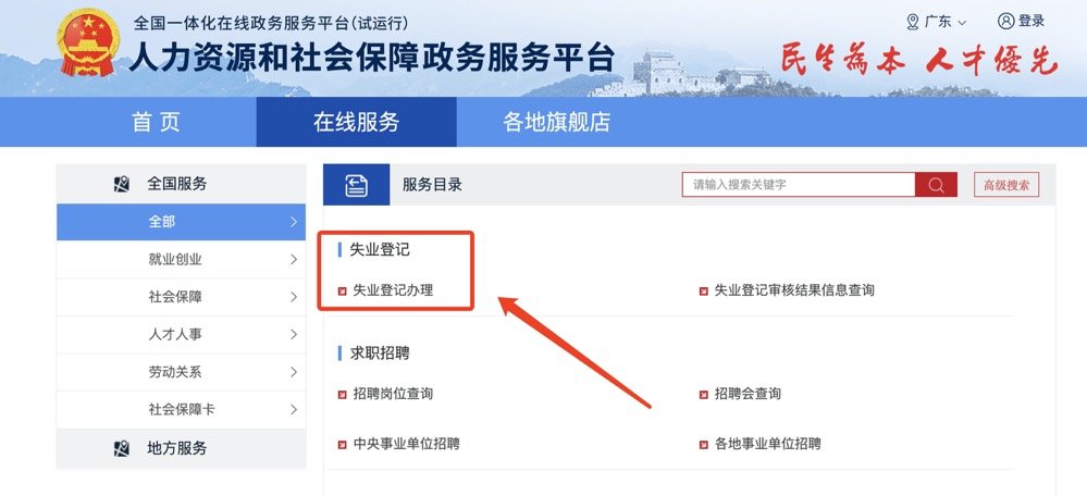 进入在线服务页面,点击“失业登记办理”,根据提示操作即可。