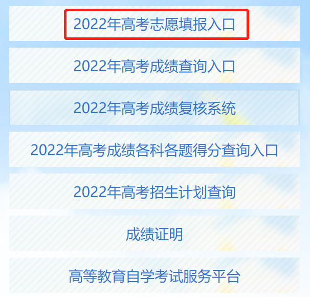 第一步:进入网站后点击页面中间部分“2022年高考志愿填报入口”;