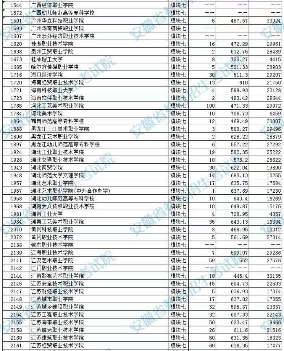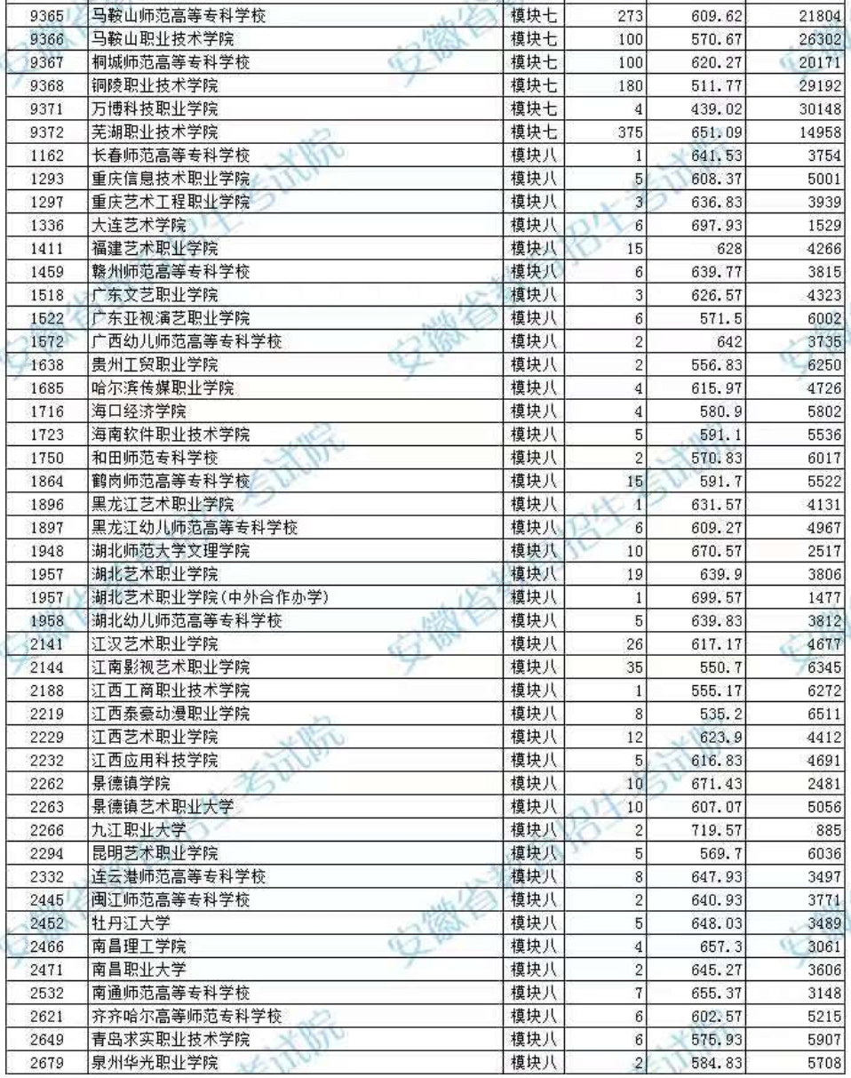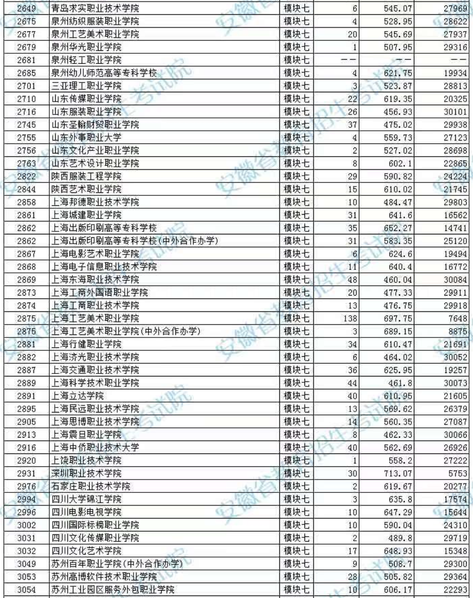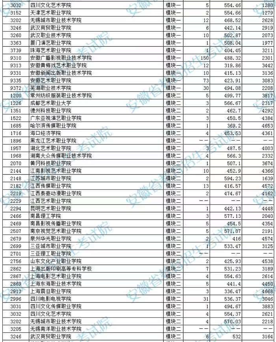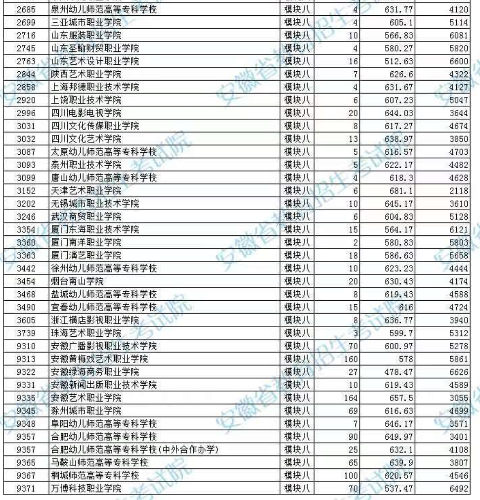 安徽2022年艺术类第四批高职专科投档最低分排名