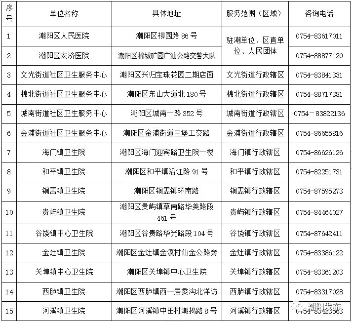 汕头市潮阳区新冠疫苗接种单位一览表(附地址+联系方式)