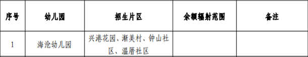 招生片区和余额辐射范围划分详见《海沧区2022年秋季幼儿园招生划片一览表》。