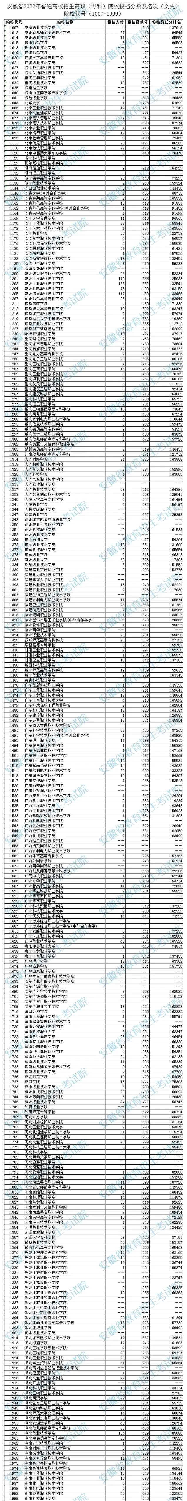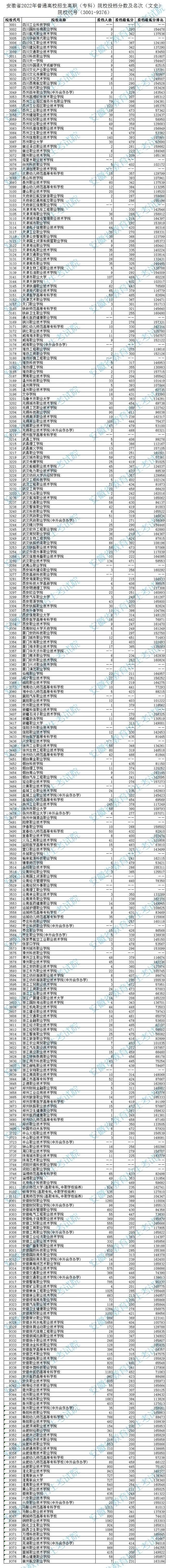 安徽省2022年普通高校招生高职(专科)院校投档分数及名次(文史)