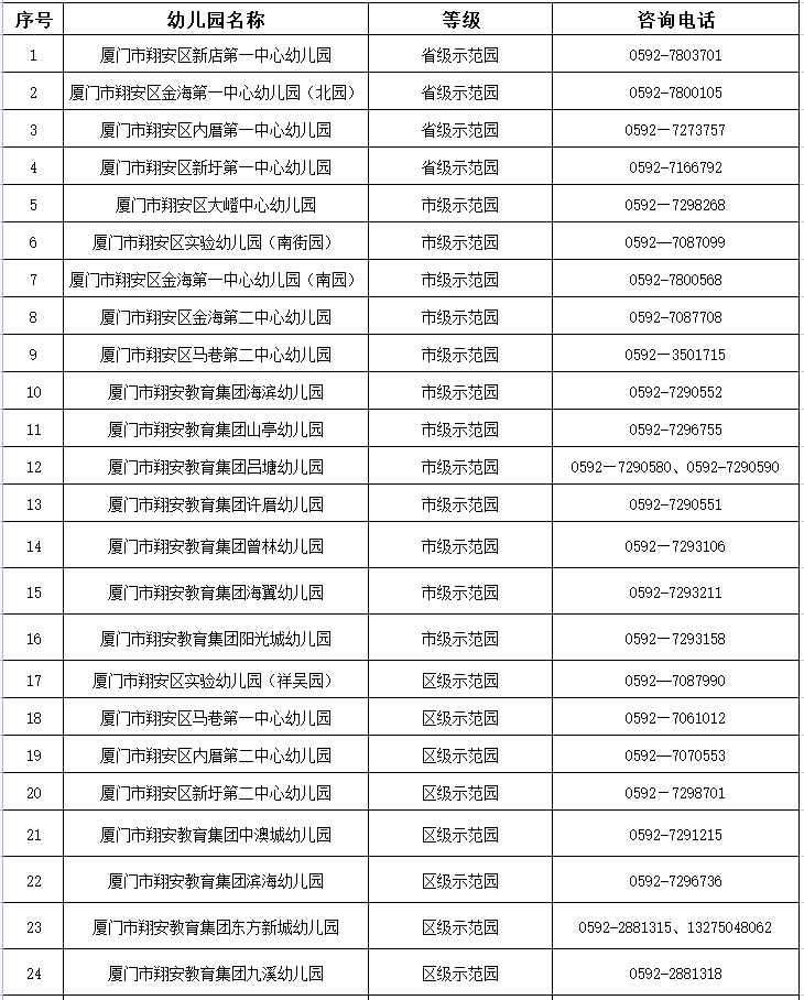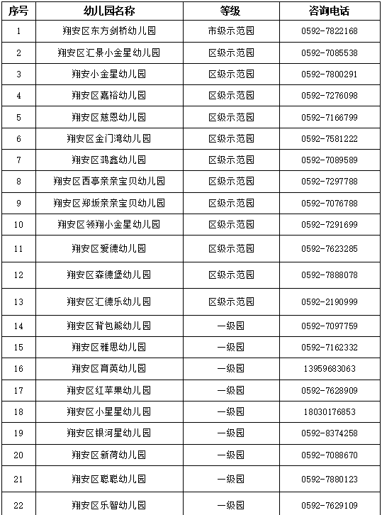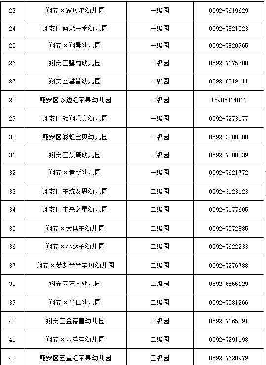 2022年厦门翔安区各类幼儿园等级公布 2022年厦门翔安区各类幼儿园等级公布时间
