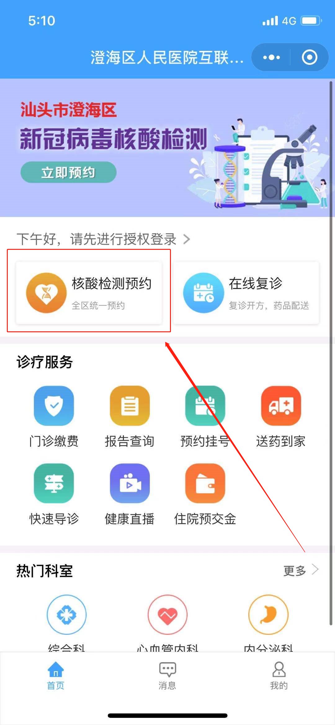第一步:点击“核酸检测预约”;