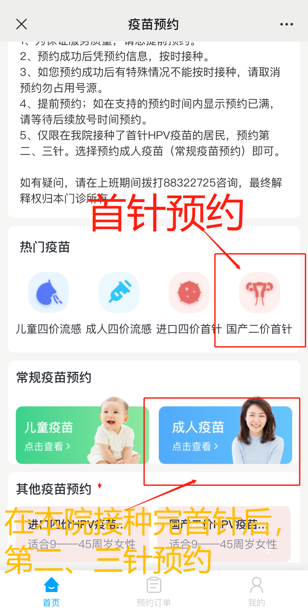 2、在我中心接种完首针HPV后,第二、三针需在常规疫苗️→成人疫苗预约接种。(不接受其他地方接种了第一、二针HPV疫苗的居民预约接种)。